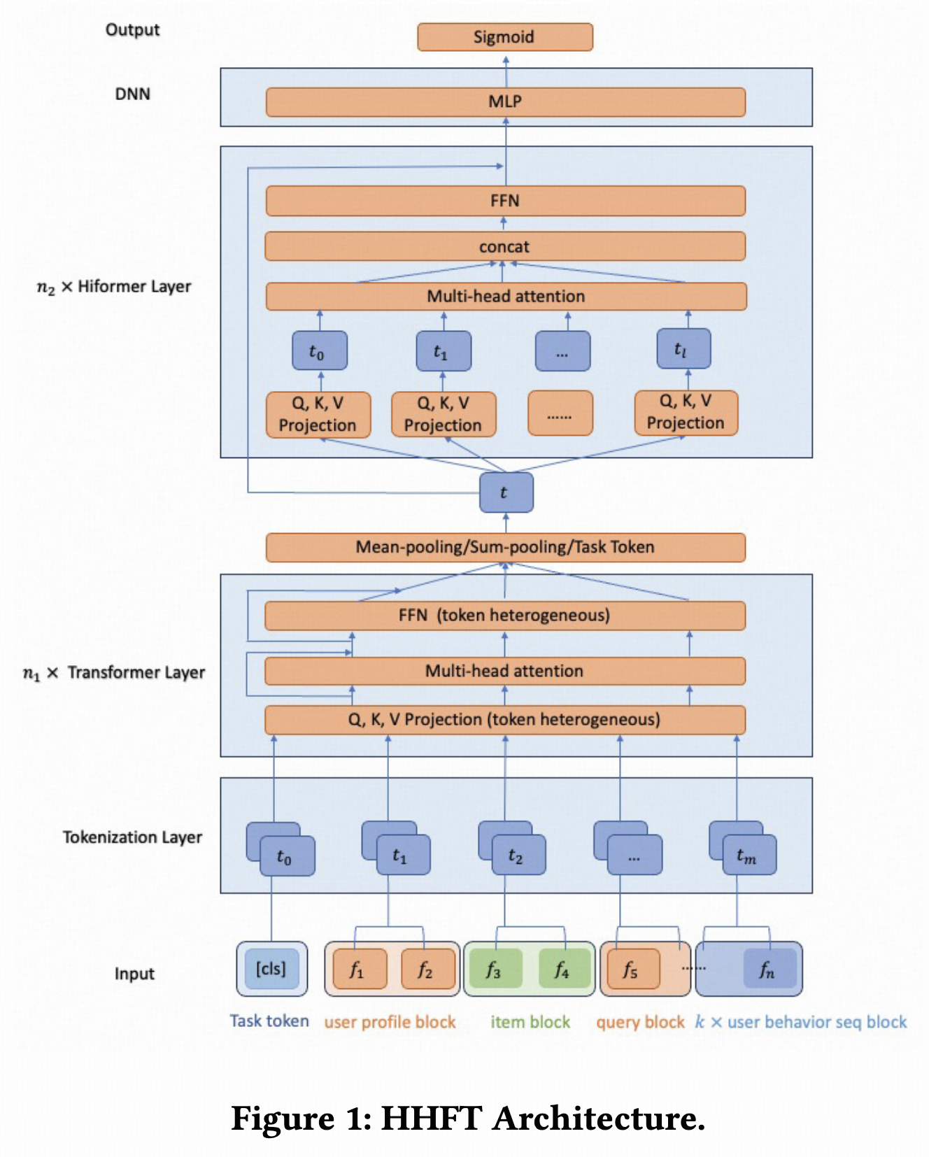 淘宝搜索在论文2中提出的,将上面介绍的HeteroAtt和Hiformer做了堆叠,先堆n1层HeteroAtt,再堆n2层Hiformer,这么做的动机在论文里没提。