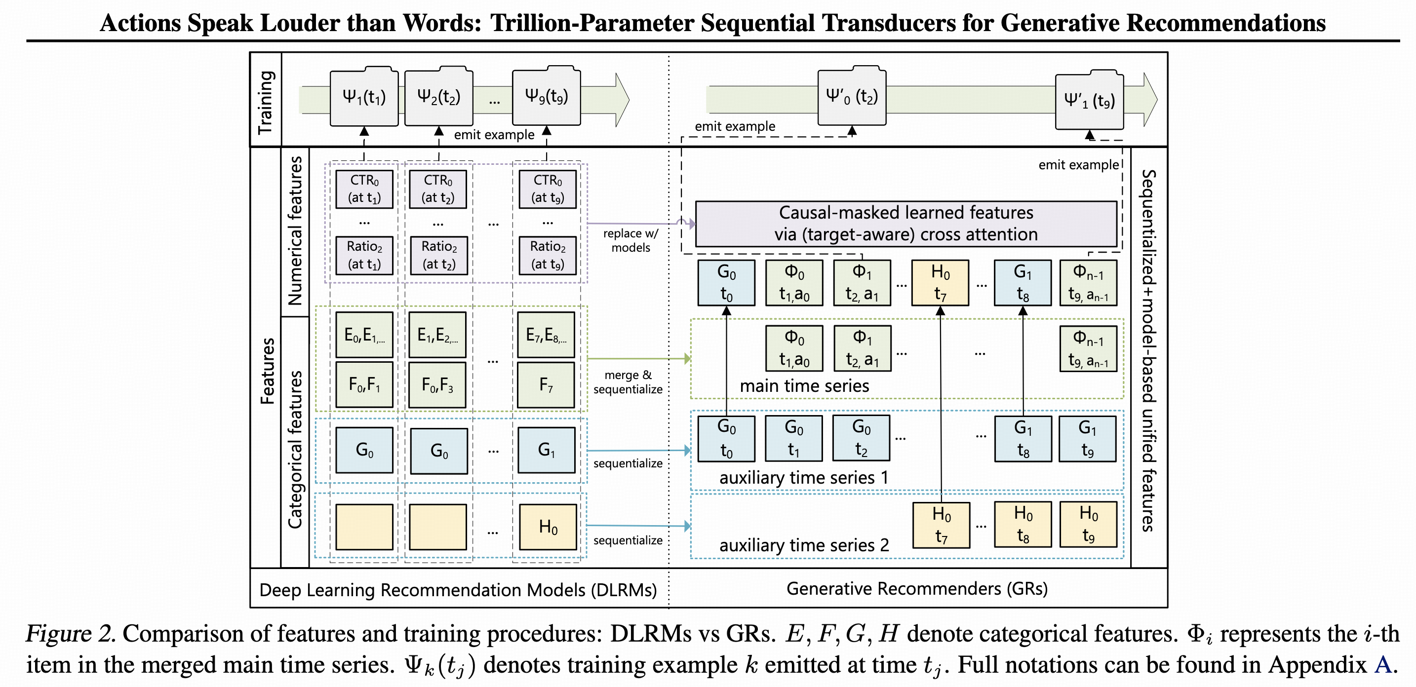 Meta在论文8提出的,掀起了生成式推荐的热潮,不过严格来说排序这块还是判别式的。